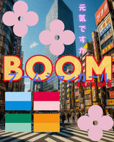 Take a step into the city night, back in time, abuzz with neon lights and playful types. GENKI DESU KA is a kaleidoscopic adventure from nostalgia to now, inspired by psychedelic streetscapes, retro video games, and the endless possibilities of a childlike imagination.