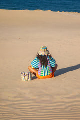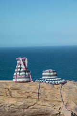 Together, Dui and Lorna have created a collection of accessories that celebrates colour, craftsmanship, and the joy of dressing boldly. It is where our love for vibrant design meets Lorna’s signature artistry, brought to life through handcrafted hats and bags in our exclusive Capri Stripe colourway.