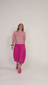 The Boom Shankar Ava Top is your new essential! This slightly cropped top in 100% cotton is comfortable and easy-to-wear throughout the seasons. The puff sleeve detail adds a touch of fun to this classic design.
