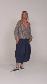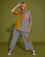 CHECK, MATE. Our Spliced Seersucker Gingham is classic with a twist. Navy, red and mustard checks collide in a bold patchwork composition that feels playful, confident and completely modern. Crafted from trans-seasonal and breathable seersucker cotton, that can be layered throughout the autumn and winter seasons. The subtle puckered texture keeps things effortless… no cling, no fuss, just relaxed structure and all-day comfort. The spliced panels create movement and contrast, turning a heritage print into a statement piece. Wear it head-to-toe for maximum impact, or break it apart and style back with our dark denim heroes. This is gingham reimagined, nostalgic, graphic and unapologetically fun.