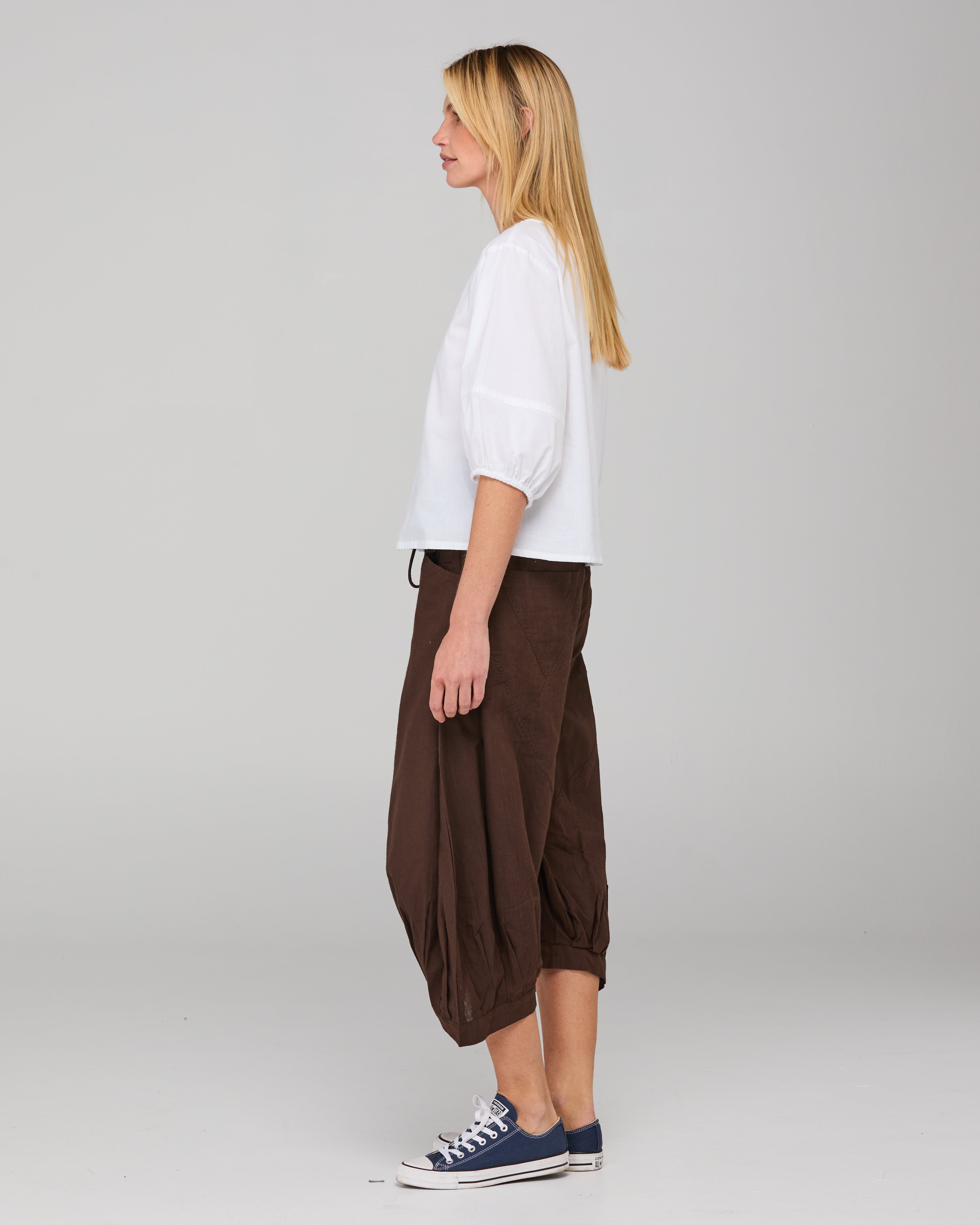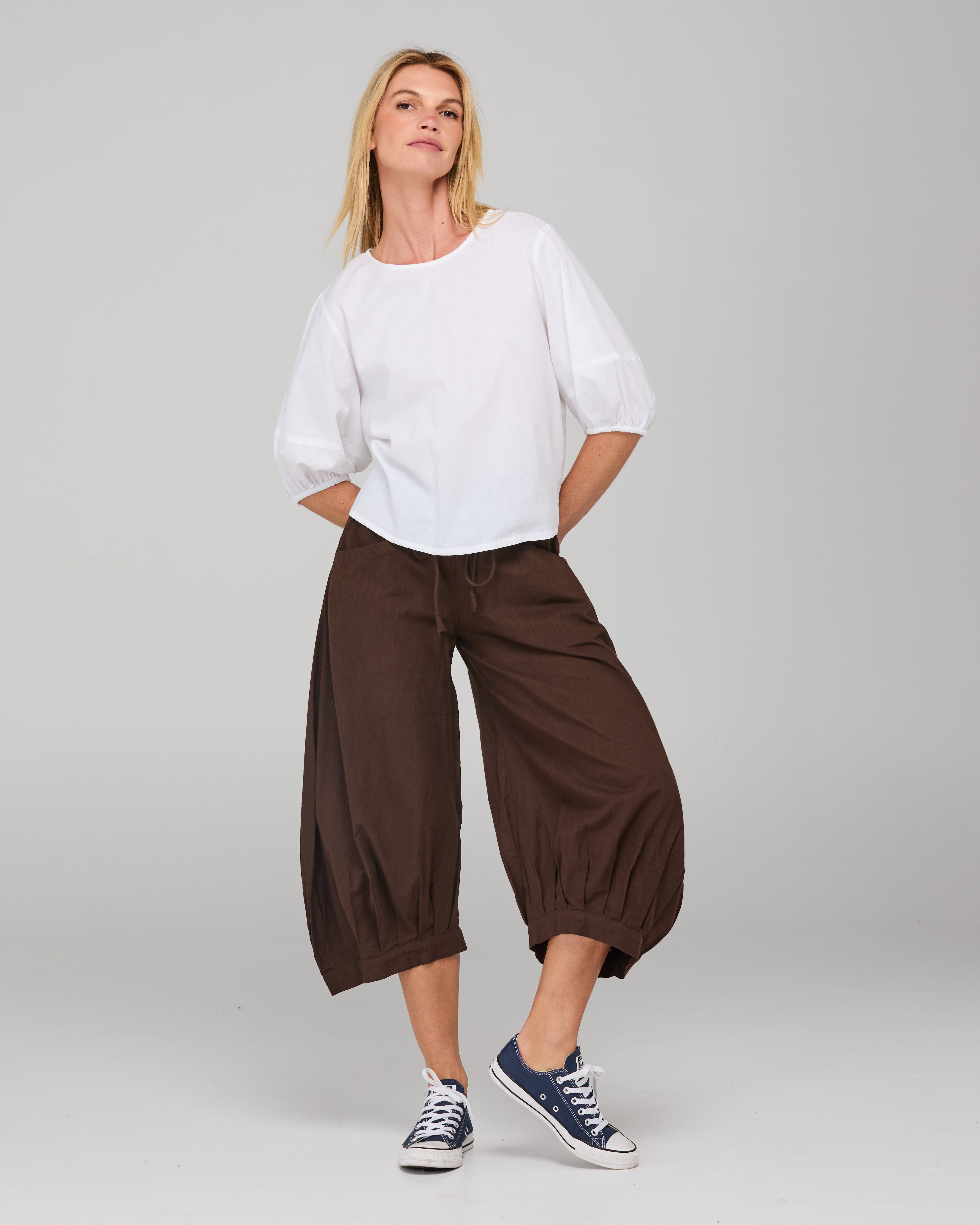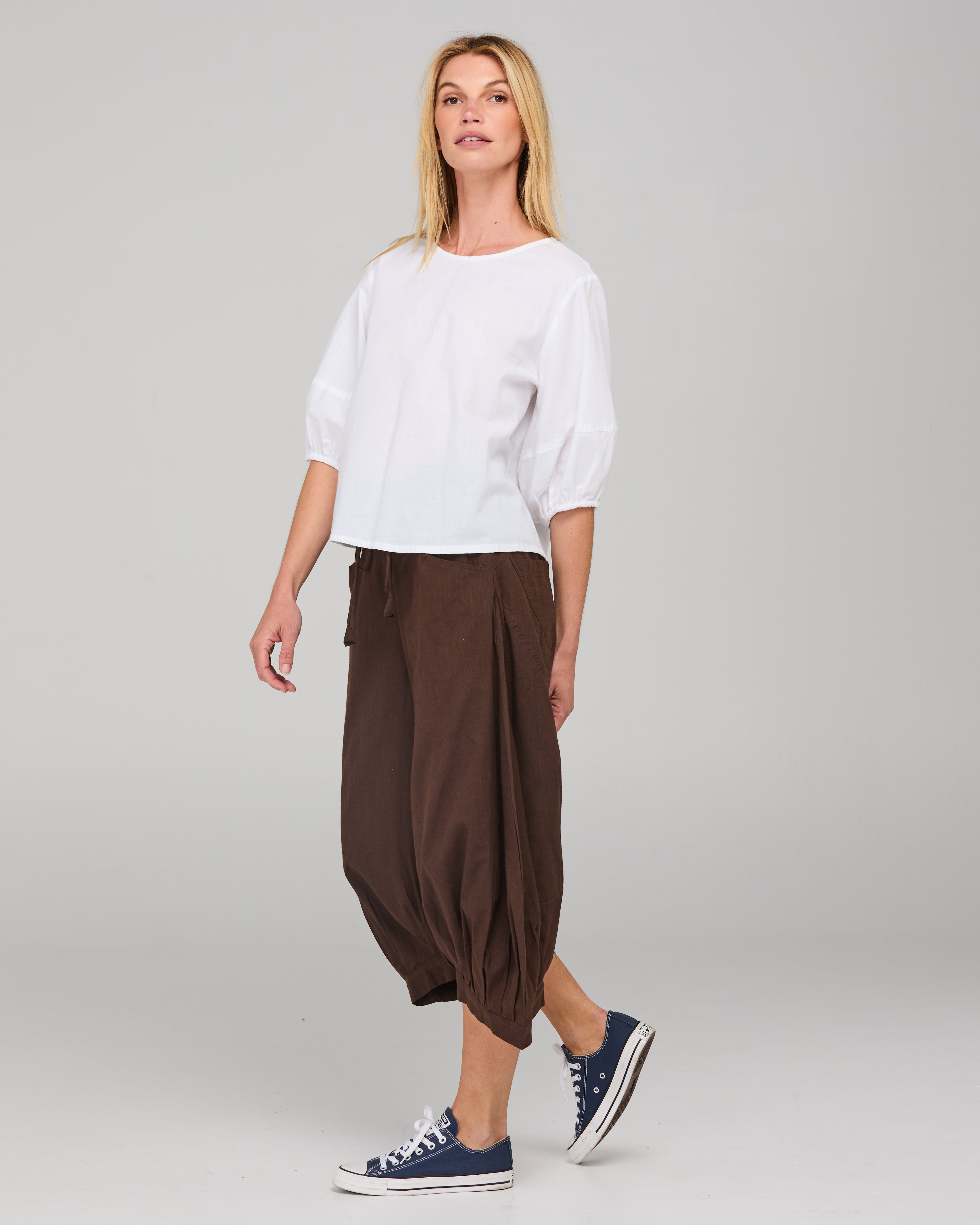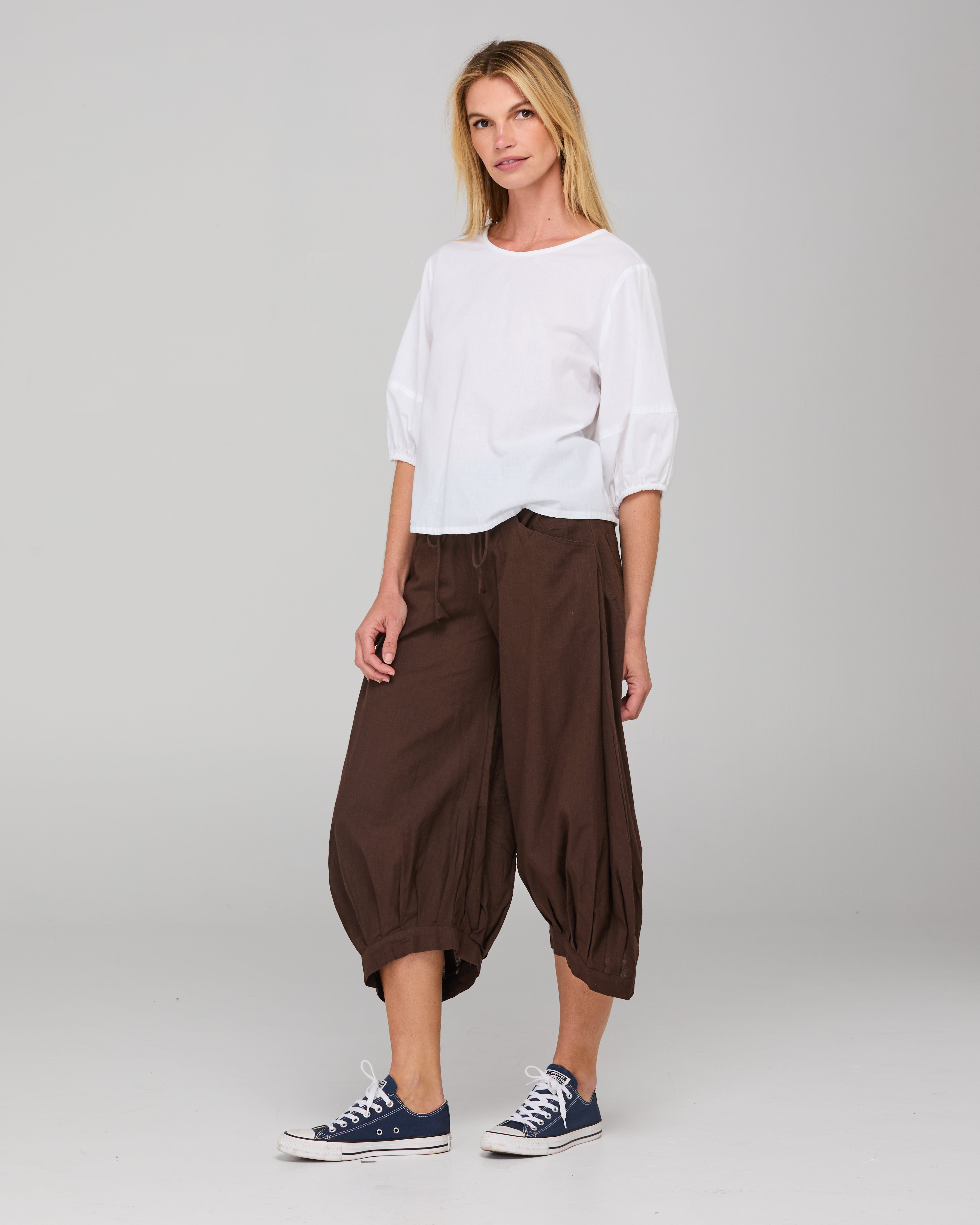 The Boom Shankar Guru Pant is our bestselling cotton essential with signature panel and seam detailing and balloon-style leg in 100% cotton. They are a 3/4 length pant fitted at the waist and with a relaxed comfy leg, perfect for everyday wear.