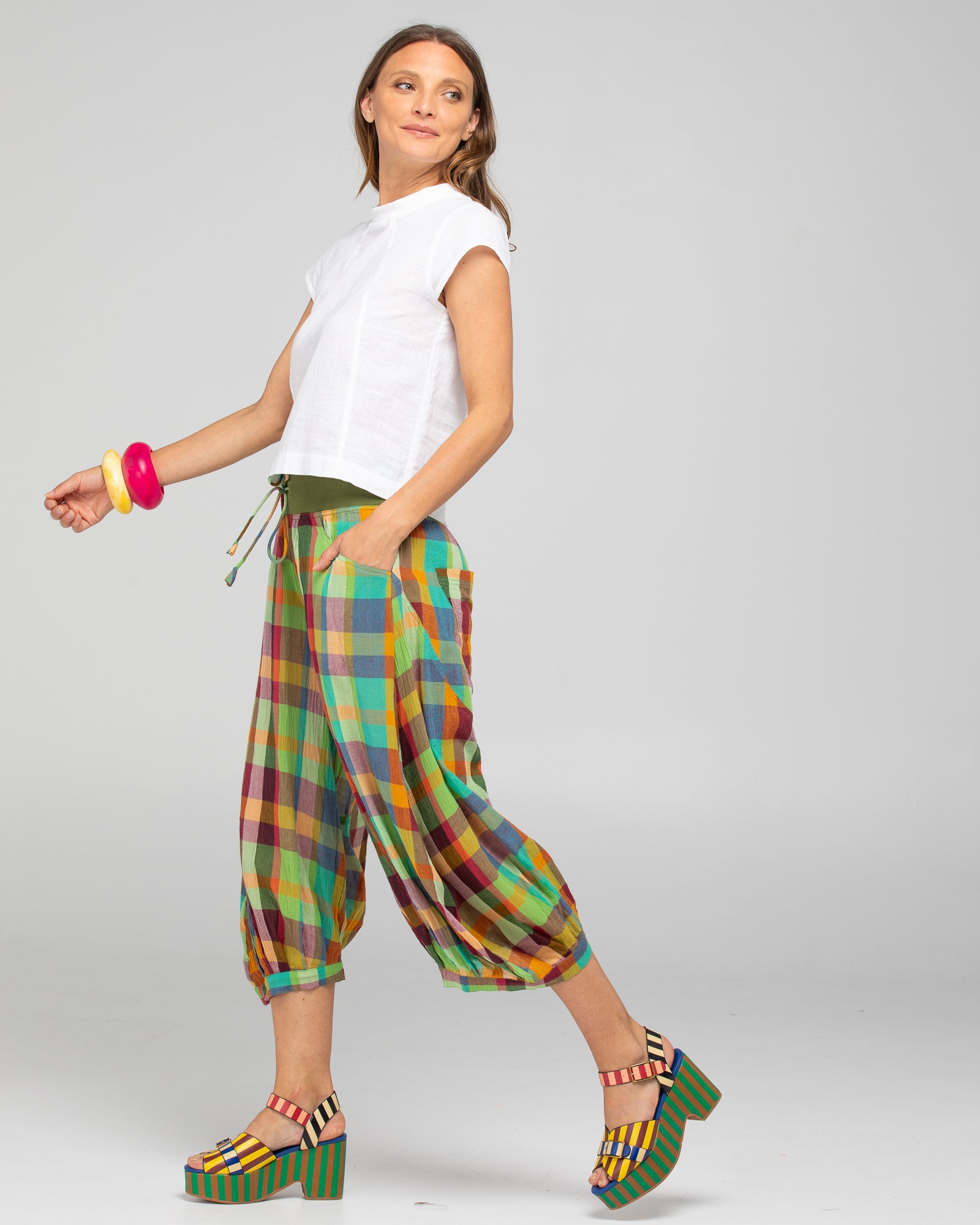 The Boom Shankar Guru Pant is a 3/4 length loose-fitting pant perfect for everyday wear. This style is fitted at the waist with a relaxed, balloon-style leg for ultimate comfort. These 100% cotton bestsellers can be worn with just about anything.