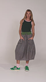 Fit Notes: The Guru Skirt fits true to size. It has a fitted stretch waistband with a fuller loose-fitting skirt. Our model is 175cm tall with 81cm bust, 61cm waist, 86cm hips and wears a size 8/XS.