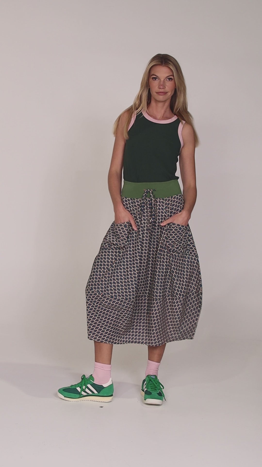 BOLD BLOOM MEETS RETRO GEO. Introducing Keiko, a floral print with a twist! Oversized, graphic petals in soft blush pink pop against a saturated emerald base, creating a print that feels playful, powerful and completely modern. Confident and a little unexpected, Yumi is the perfect retro geo. Crafted from lightweight cotton with a smooth, breathable feel, she’s designed to move with you. Vibrant, effortless and ready to make an entrance. Wear the prints together or pair it back with our denim heroes and Midori Cotton Essentials.
