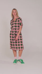 BOLD BLOOM MEETS RETRO GEO. Introducing Keiko, a floral print with a twist! Oversized, graphic petals in soft blush pink pop against a saturated emerald base, creating a print that feels playful, powerful and completely modern. Confident and a little unexpected, Yumi is the perfect retro geo. Crafted from lightweight cotton with a smooth, breathable feel, she’s designed to move with you. Vibrant, effortless and ready to make an entrance. Wear the prints together or pair it back with our denim heroes and Midori Cotton Essentials.