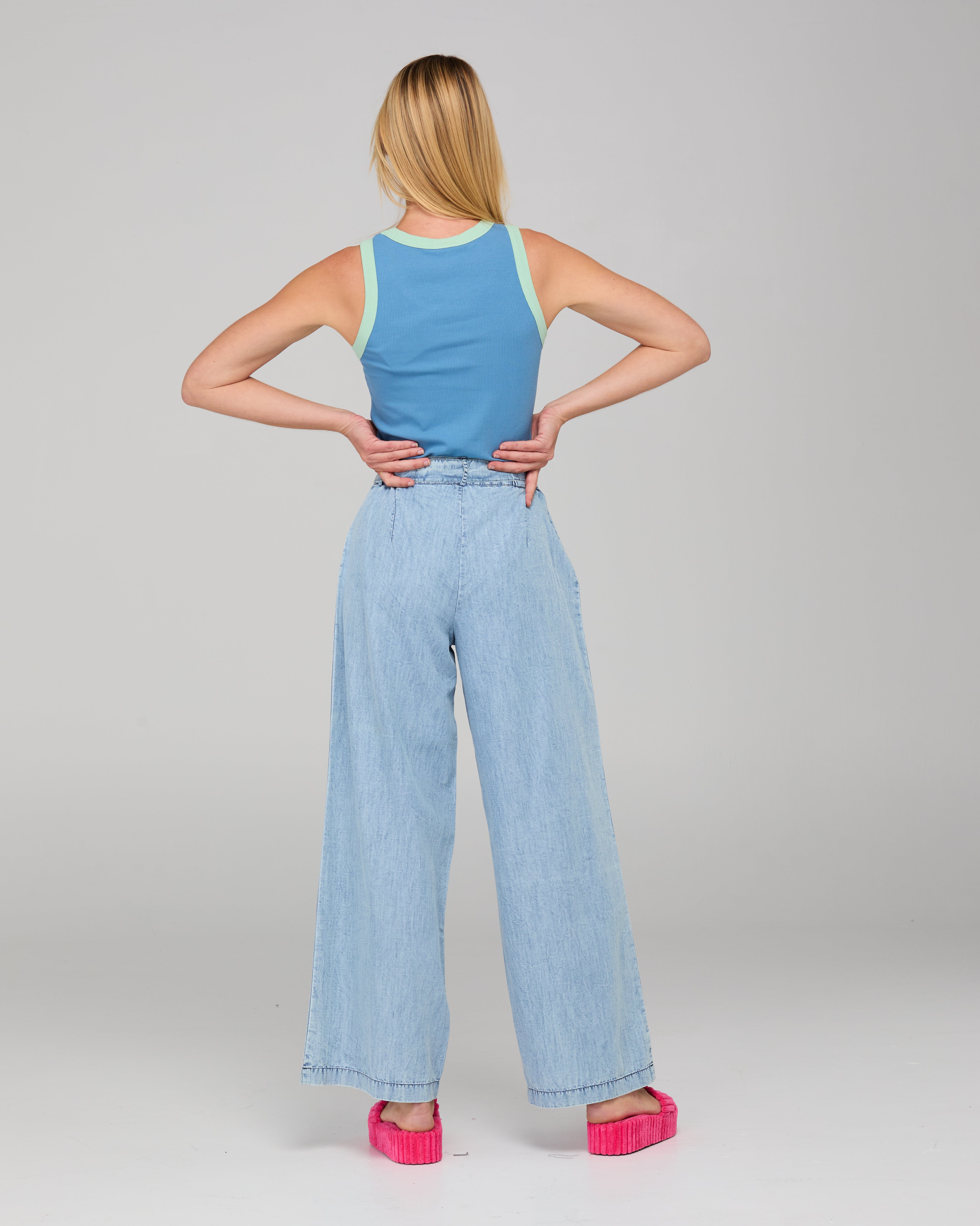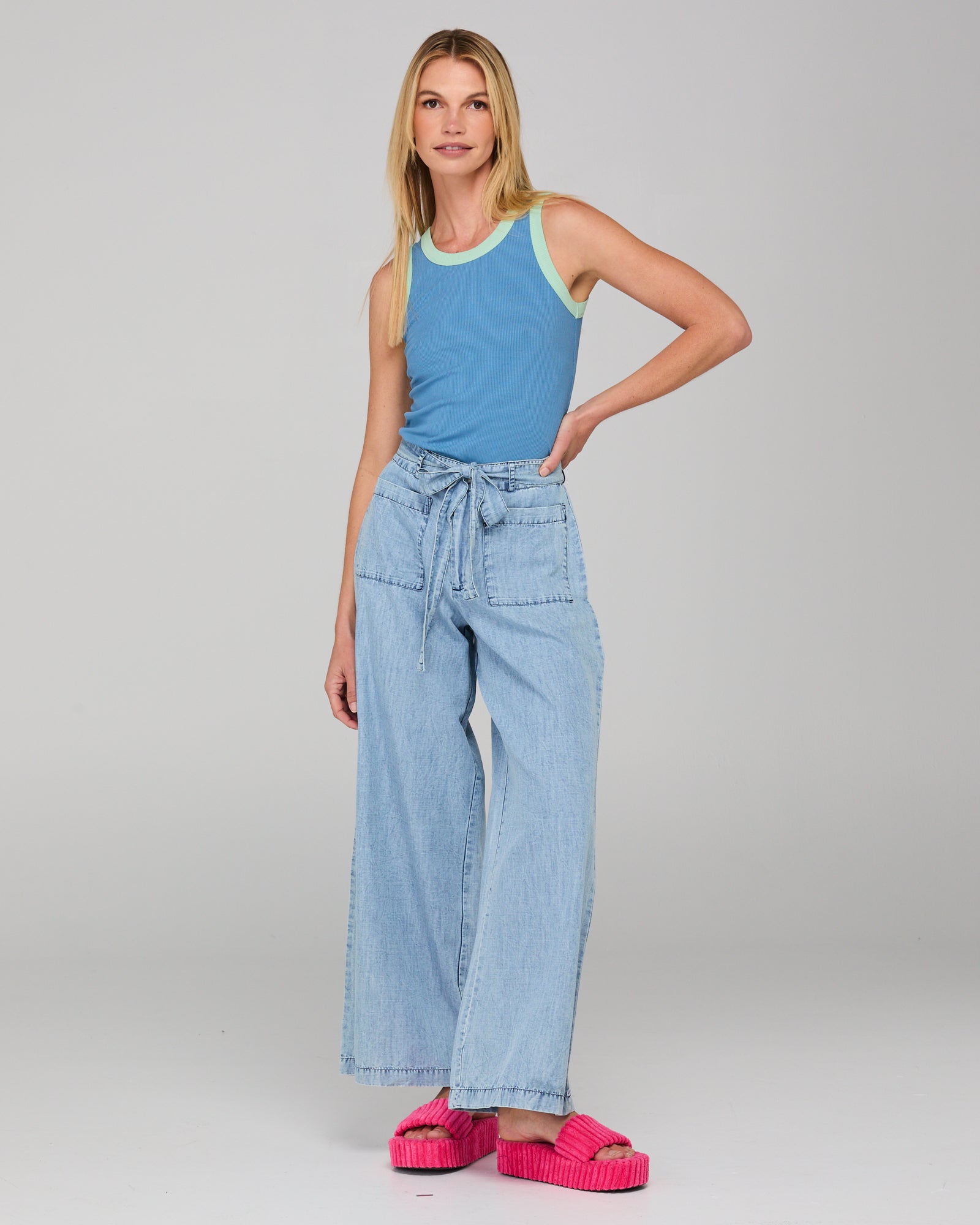 Fit notes: The Ray pant is fitted on the waistband with a relaxed wide leg.
