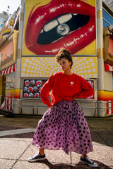 Supotto brings a spirited energy to your wardrobe with its soft purple base scattered with bold, irregular polka dots. Playful yet considered, this print feels modern and expressive, the perfect balance between statement and ease. Crafted from 100% crinkle cotton, Supotto has a lightweight, textured feel with natural movement and breathability. The subtle crinkle adds depth and dimension, creating an effortless, lived-in look that travels beautifully from day to night. Designed to be styled back with our bold red Amore Jumper, this pairing delivers a confident clash of colour, it’s fresh, fun and undeniably cool.